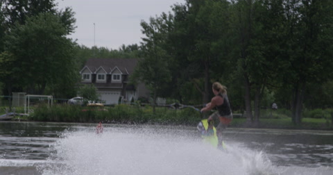 Man Carving Wake Surf Board On Lake - Extreme Summer Sports