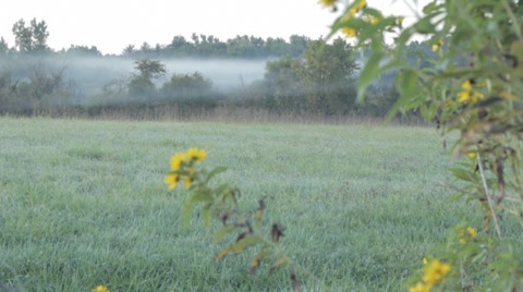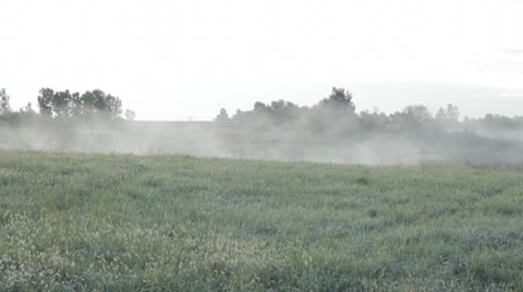 Aerial shot of clouds covered landscape at sunrise
