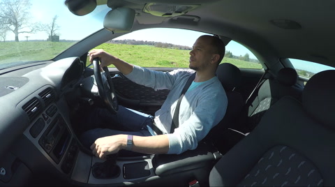 Unique angle of a car speeding along an empty country road