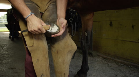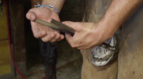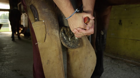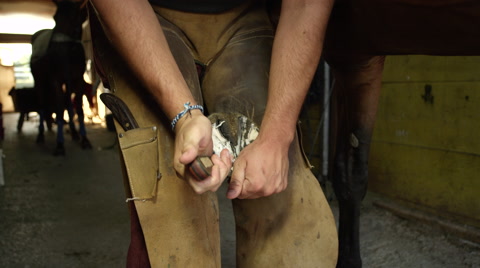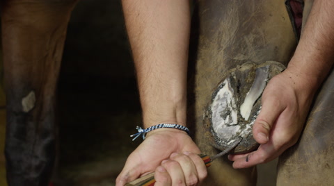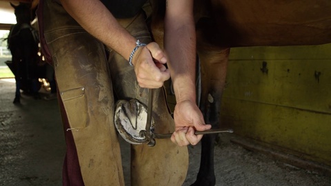 Skillful Farrier Carefully Removing Nails From Horseshoe On Horse Hoof
