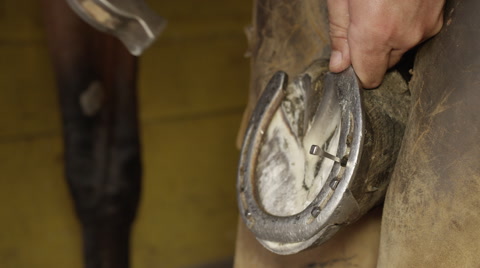 Experienced Farrier Trimming Horse's Hoof At The Point Of The Frog