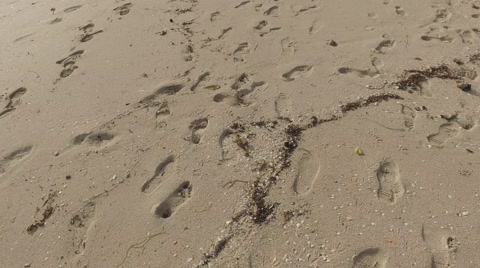 Stock footage of footsteps on the beach