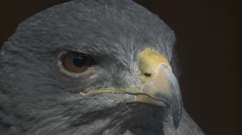4K Tethered bird of prey tears into a meal of dead rodent, standing on handler's glove at a falconry centre. Shot on RED Epic.