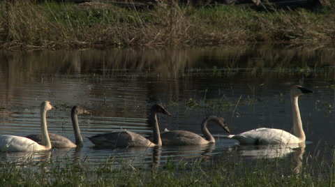 Trumpeter Swans in flight.