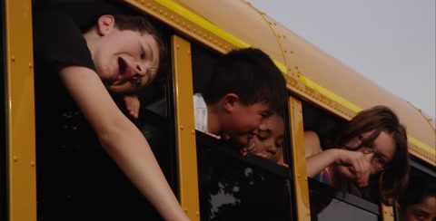 Children on a yellow school bus. Kids from all over america take busses just like this on their way to class. Education is important and a safe reliable form of transportation is found on the bus.