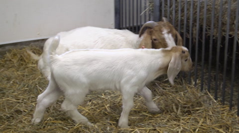 Baby goats are very cute.