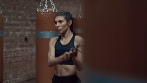 Slow Motion Focus Pull From Weights To Woman With Kettle Bell