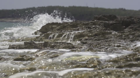 SLOW MOTION: Ocean waves on exotic beach at sunset