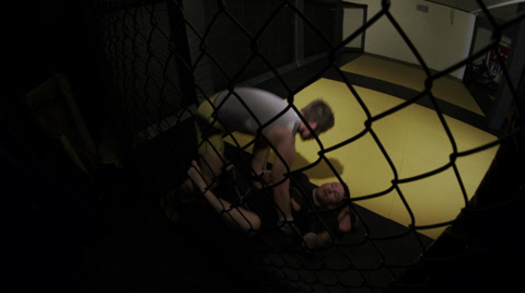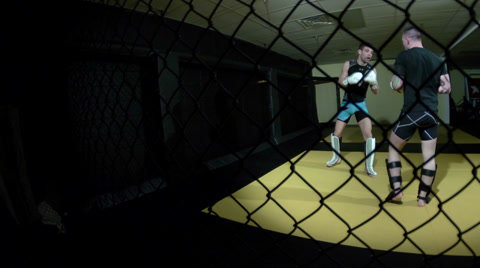 Rear View Of The Boys Athletes And Referee Who Raises The Hand Of The Winner
