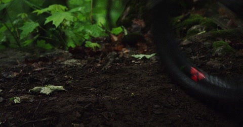 Shot Of Couple Of Cyclists Knees And Their Racing Bike's Front Wheels