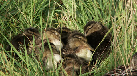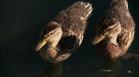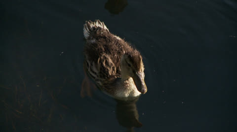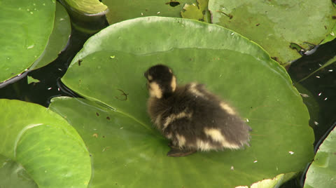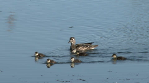 Ducklings on a pond.