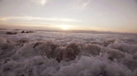 Waves splashing over rocks in slow motion