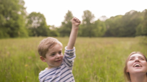 Mother and son exploring park together