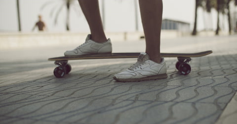 Young woman roller skating or roller blading on an urban street approaching the camera from a distance on a sunny day