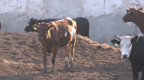 Cows eat on a farm in ukraine