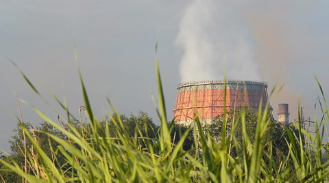 Old factory heavy industry with working chimneys