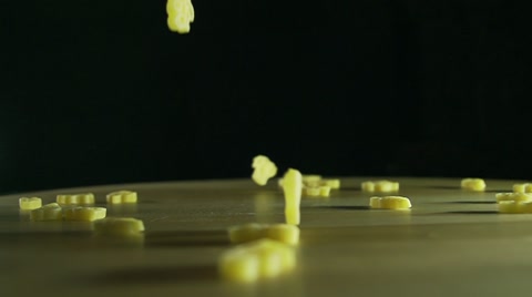 Cashew nuts and chickpeas falling on a wooden board in slow motion