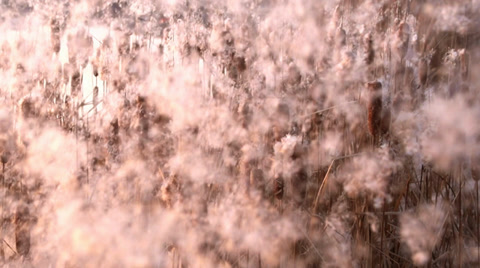 Beautiful dry marsh grass illuminated by sunlight in slow motion