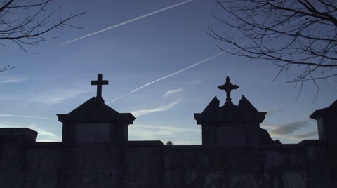 Sad woman sitting at a grave lit by burning candles