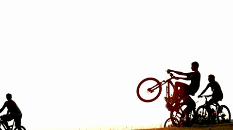 Aerial footage of motorcyclist doing tricks in an empty parking lot